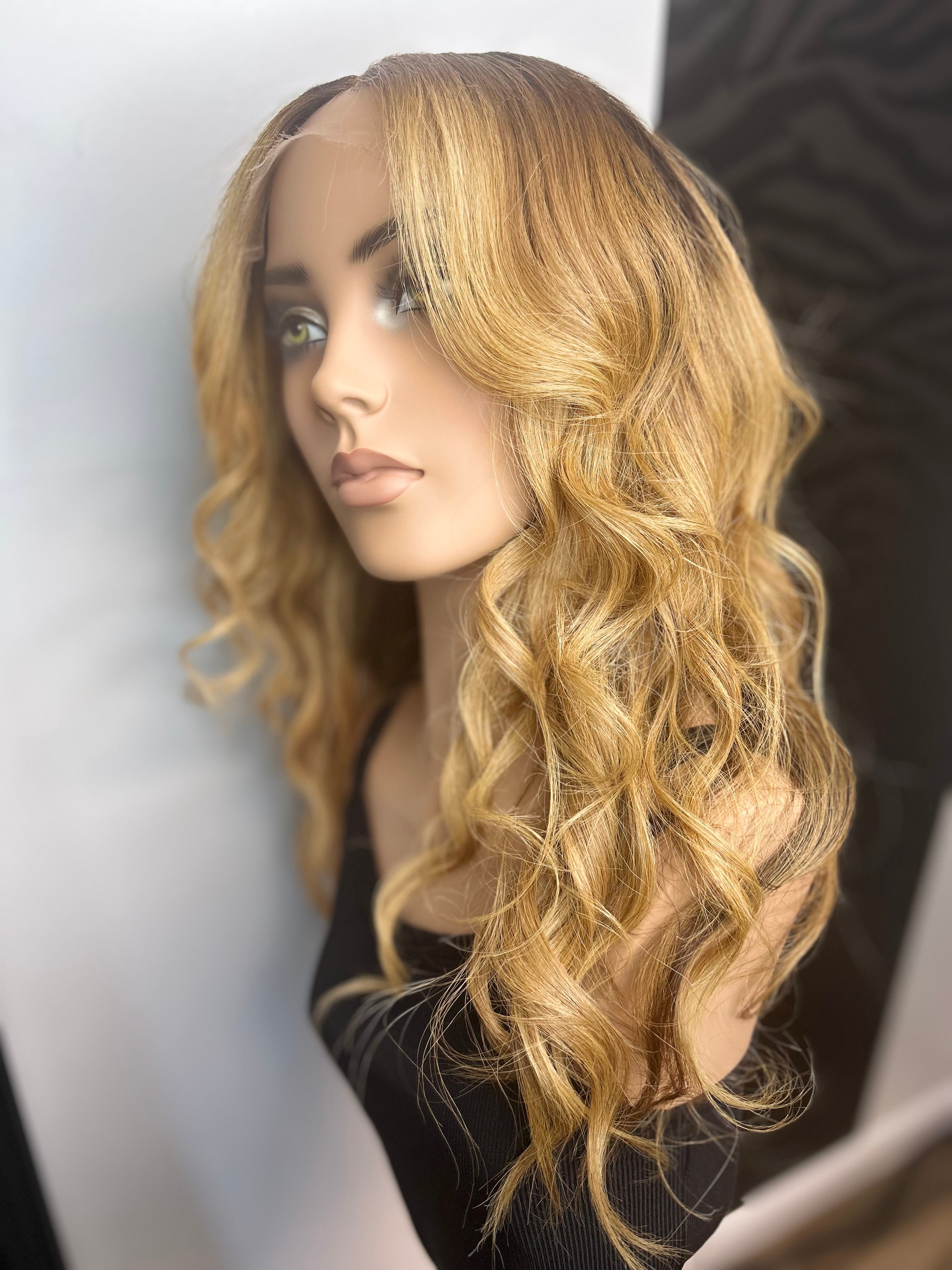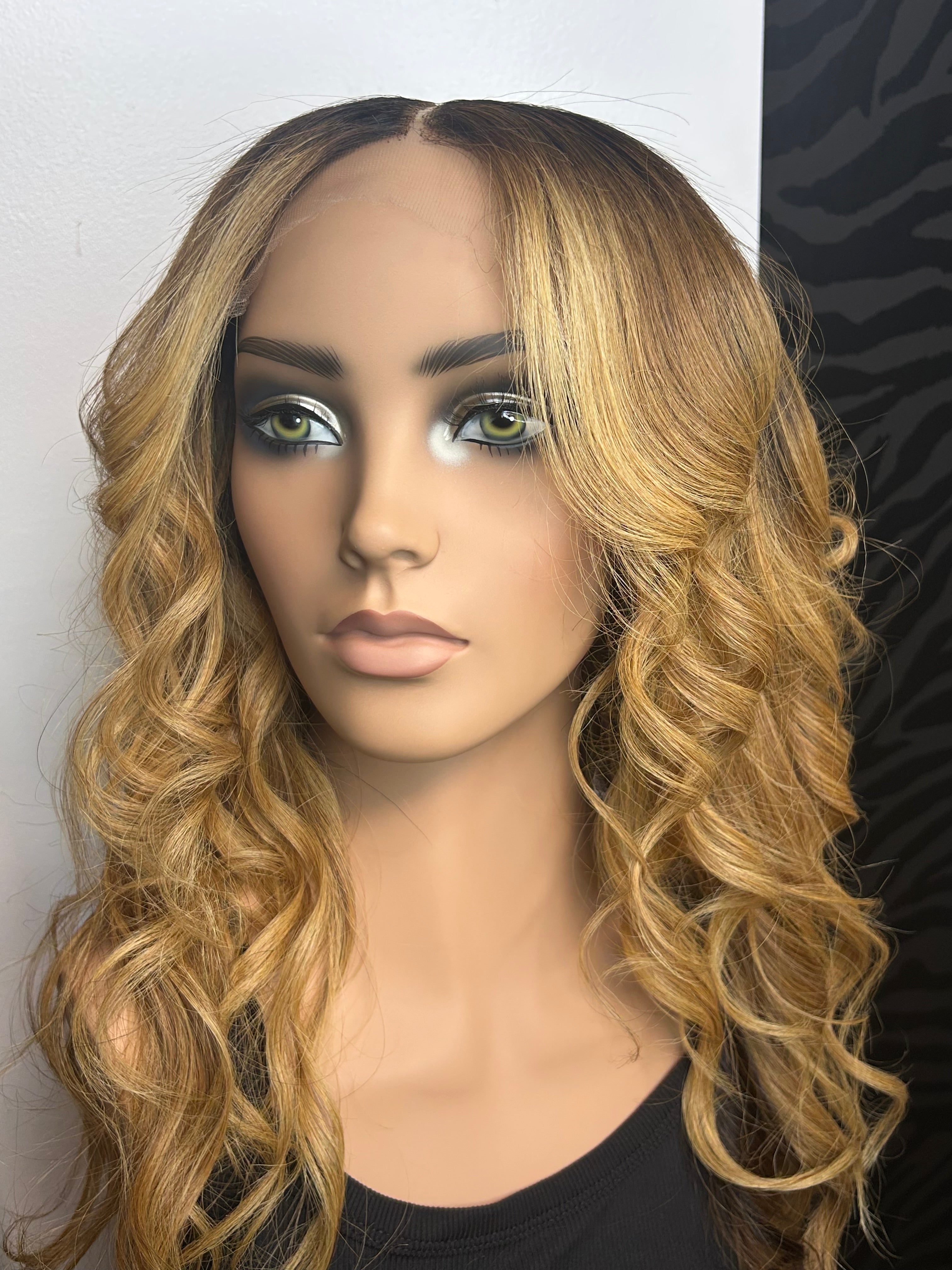 This is a 5x5 HD lace closure unit 16” past the shoulders with layers and highlights constructed on dome or wig lace cap.